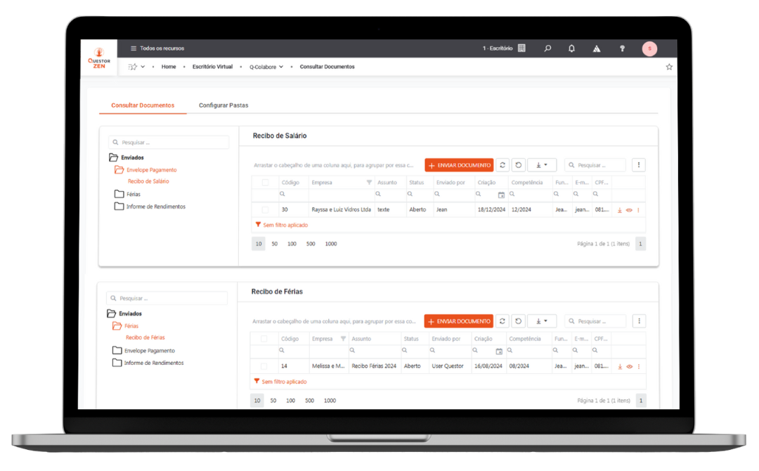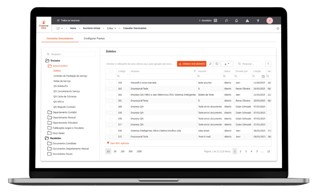 Com o Questor Zen, seu escritório elimina tarefas manuais e descentralizadas. Todos os documentos necessários são organizados automaticamente em um só lugar — com acesso facilitado pelo portal, e-mail ou até mesmo pelo WhatsApp.