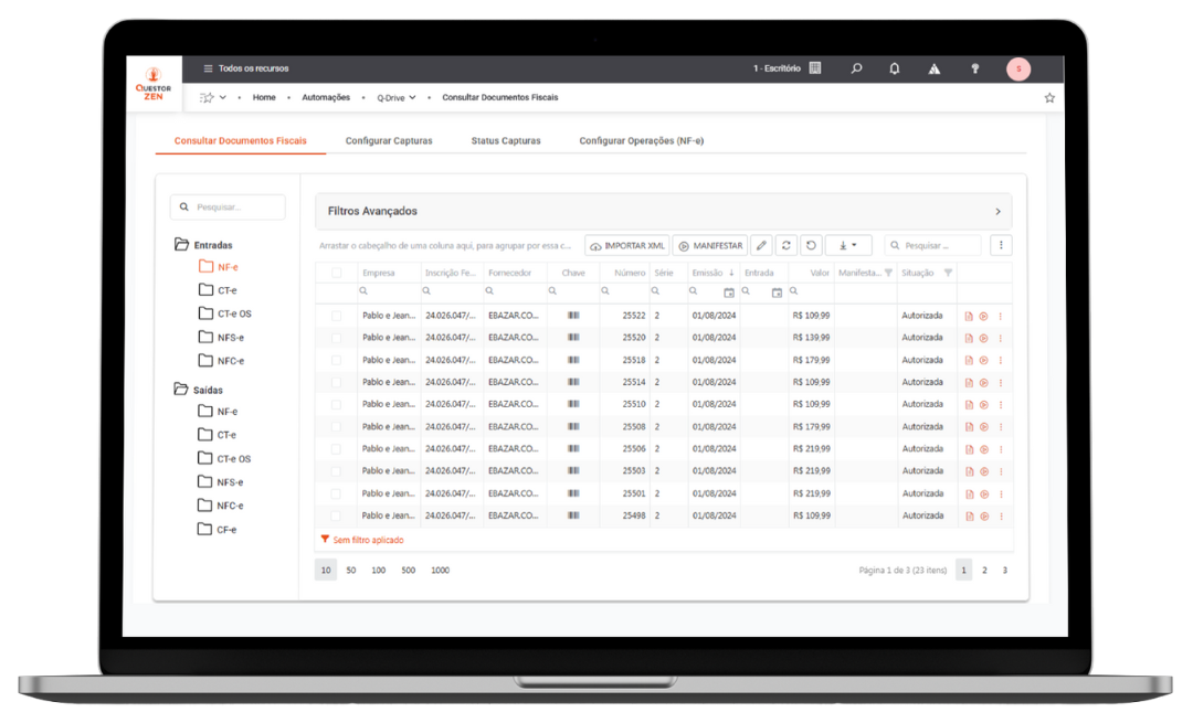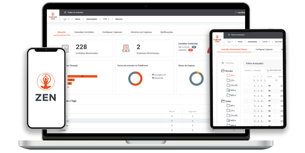 Com o Questor Zen, você simplifica a comunicação entre seu escritório contábil e seus clientes. Um portal de autoatendimento 100% web, que permite centralizar documentos, automatizar a recepção de notas fiscais e garantir o envio seguro de informações fiscais, contábeis e trabalhistas — tudo isso sem complicações.